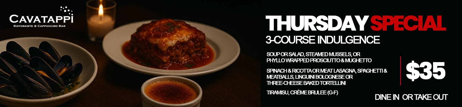 Step into old-world Italy right here in London, Ontario. At Cavatappi, we celebrate the heart of Italian cuisine with a warm, inviting atmosphere, a passion for food made with love, and a flair for classic hospitality. Whether you’re craving a rich risotto, a hand-pulled espresso, or our famous Nona’s recipe pasta — Mama Mia, you’re in for a treat!
